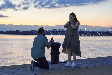 September 28th - a gorgeous early-fall day. Brad suggests that Lauren and he get out of the house, but lets Lauren pick the itinerary. After dinner, Brad proposes on the Pier at National Harbor, overlooking the Wilson Bridge and the Potomac River.
